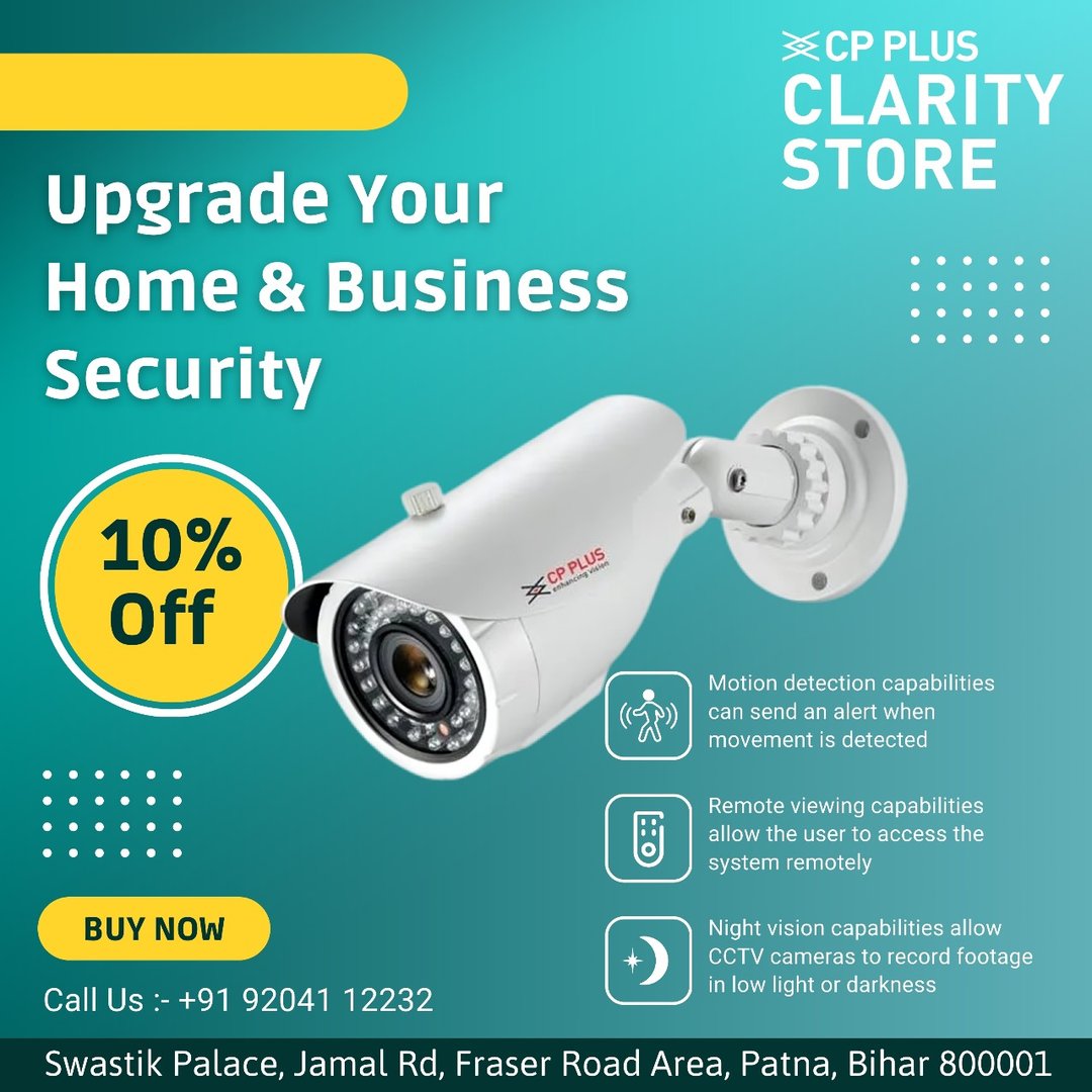 CP PLUS CLARITY STORE is the main CP Plus distributor point in Patna. Which deals with CCTV Camera, Biometric devices, DVR, NVR, IP Camera, Interactive Panel, etc. It is one of the best distributor of CCTV Camera in Patna